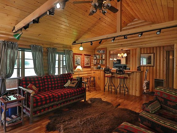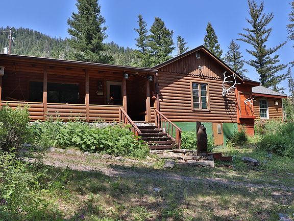 This classic log cabin sits on Shoshone National Forest minutes from the east gate of Yellowstone National Park. Walking into the living room from a covered porch, the focal point is the moss rock fireplace. Large windows provide abundant light and magnificent views. The kitchen has a breakfast bar and good storage and working space. 2 bedrooms, 2 baths. This cabin is on Forest Service lease.