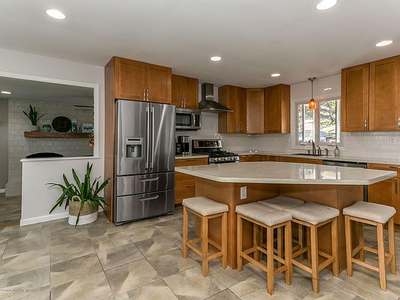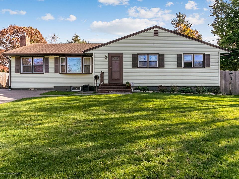 Located on a quiet cul-de-sac, this beautiful well kept 3bed 1bath open floor ranch sports an expanded updated EIK with a large center island with SS appliances. The kitchen leads into a cozy sunken living room with a wood burning fireplace. Enjoy the spacious fenced in backyard with new paved patio, stone fire pit, 2 storage sheds and a swing set. This home features recessed lighting, paved driveway, tiled and hardwood floors throughout, central air, newer hot water heater, and full basement. Conveniently located to all major highways, shopping and beaches. Just unpack and enjoy!!!
