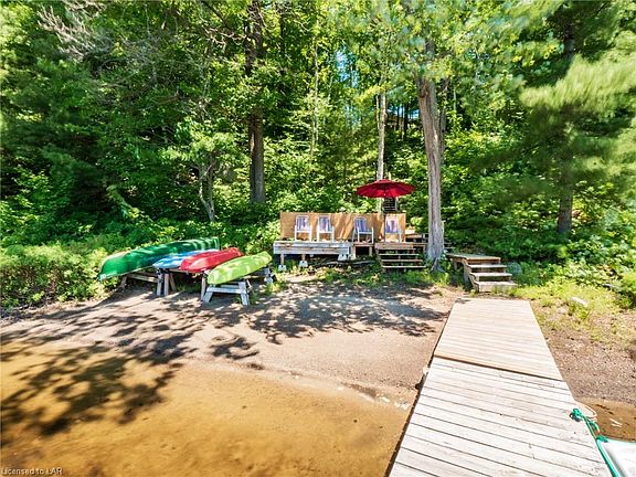 EXCEPTIONAL PRIVACY, with open concept floor plan complete with 2.667 acres of mature forest, 278 ft of waterfront and western exposure on beautiful BELL LAKE. Only 10 minutes from the town of Parry Sound, Bell Lake is ideal for boating, paddle boarding, canoeing, swimming and fishing. At the waterfront there is a natural sandy beach for wading into the water, a dock for your boat, waterslide, racks for your water toys, and a deck for spending your days in the sunshine while the children play at the water's edge. The 1400 sq ft bungalow has a an inviting cottage feel with pine interior, vaulted ceilings, and a wall of sliding doors/windows creating bright warm living spaces. With 4 bedrooms the cottage has plenty of space for your family and/or for guests. The floor plan lends itself perfectly to sharing time with your guests, with a spacious kitchen/living/dining area that flows from room to room, as well as to the side deck for easy access to the grill, and the beautiful front deck that spans across the front of the cottage and overlooks the waterfront. At the end of the day, unwind in the sunroom which is ideal for spending time relaxing, entertaining, or working from the cottage surrounded by tranquility. Main floor laundry, unfinished basement with workshop and walkout, and large 900 sq ft, 3 car detached garage with finished 485 sq ft upper level loft, work shop area, and plenty of storage for recreational vehicles and/or equipment. Located on a private seasonal road with potential winter access, close to area ATV/snowmobile and hiking trails, cross country skiing, and a short drive to countless lakes and the shores of Georgian Bay. This property has been extremely well maintained and pride of ownership is apparent. Click on multi-media for video of this terrific piece of paradise in the heart of cottage country. 2021-06-29