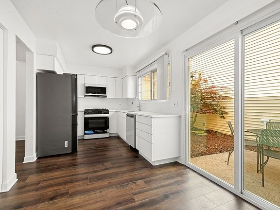 Wait until you see this artfully modernized townhome in Le Jardin! All new custom designed kitchen with white glass appliances, Franke farmhouse sink, Allure touch-latch cabinets, quartz countertops, and glazed ceramic white deco backsplash. Cocoa waterproof laminate flooring, all new Bali blinds, freshly painted white walls with a touch of gold, and contemporary ceiling lights accent the home. A central, completely private atrium, with arching Japanese maple and cement patio, brings life to all rooms and is easily accessed via a new American Craftsman kitchen sliding door. Gorgeous living room with natural wood mantel fireplace, cathedral ceiling family room, and laundry area with new Whirlpool washer/dryer and cabinetry. Lower half-bath decorated with a classic metal frame, white resin countertop vanity and round lighted mirror. Spacious, master bedroom has a generous walk-in, multi-shelved, modular closet with an attached room well suited for a home office or plumbing-ready additional bath. Hexagon, mosaic tiled primary bath with ultimate Hansgrohe Raindance fixture in walk-in shower, anti-fog lighted mirror, and wall-mounted, quartz top vanity with California handcrafted faucet. Equipped, as in the lower bath, with a new Kohler comfort height, elongated bowl toilet. Upper level also has a sunlight-filled second bedroom with an atrium view. There is not one thing to do except move in, furnish, and enjoy! Property in a quiet, well-maintained neighborhood on a cul-de-sac with a beautiful pond and fountain. You couldn't ask for a more ideal location. All shopping and numerous dining options literally a minutes' drive away. Golf courses and highly revered forest preserves for walking, biking, canoeing, and exploring are nearby. Rte. 53 is a few miles west and 294 a few minutes east. Part of the sought-after and prestigious Adlai Stevenson High School District.