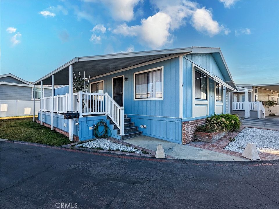 SELLER ACCEPTED OFFER BUT LET LISTING AGENT KNOW IF YOUR BUYER IS SERIOUS!!! Welcome to this inviting 2-bed, 2-bath 1248 sqft home in Anaheim's Rancho La Paz mobile home community! This All-Age manufactured home offers bright and cozy living. With high ceilings and an open layout, it features a laundry room, walk-in closet, front porch, and a spacious storage shed by the 3-car carport. Roof is from 2016. All appliances are included. Rancho La Paz is a sought-after gated community with amenities like a Olympic-size pool, spa, billiard room, fire pit, and BBQ facilities. Conveniently located in Anaheim with easy access to freeways 91, 5, and 57, and within 5 miles of Disneyland, Anaheim Convention Center, Angel Stadium, Anaheim Ducks, Hillcrest Park and Laguna State Park. New space rent is $1997/m, only $15/year in property taxes (no registration). Schedule an appointment to see this home today! Sold AS-IS and subject to park approval. Disclosures/report in supplements. Contact Listing Agent to schedule appointment - by appointment only because of gated community.
