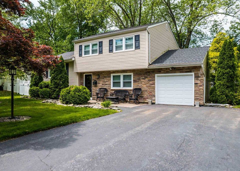 This beautifully updated 4 bedroom split level home in Manalapan is not to be missed. Move right in to an immaculate home featuring gorgeous stone work on the exterior, new roof, and new doors. The front of the home has a paver patio and the park-like backyard has a custom 2 level Trex deck with pool. Hardwood floors in the living and dining room, granite countertops and stainless appliances, and renovated bathrooms. Upstairs bath has Jacuzzi tub and double sinks, and stunning tilework. Finished basement is bright and adds another level of living space. Pride of ownership is obvious here and this desirable neighborhood is close to stores, restaurants and schools.