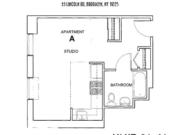 This 425 square foot apartment home has 0 bedrooms and 1.0 bathrooms. This home is located at 33 Lincoln Rd APT 2A, Brooklyn, NY 11225.