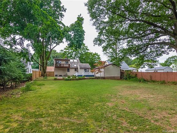 You MUST come and see this charming, expanded Cape, located on a quiet street on nearly a third of an acre in North Haven! This home has an open floor plan and offers so many possibilities; with a first floor bedroom or office option, a versatile living and dining room space, and a gorgeous backyard and deck area for outdoor entertaining. The dining room has hardwood floors and both the kitchen and living room have luxurious travertine tile floors, which is currently covered by carpet in the living room. The master bedroom is very cozy and offers an en suite bathroom with a soaking tub surrounded by unique marble tiles. Walk out to your balcony and relax with a glass of wine, while taking in the lush greenery of the mature oaks and maples in the backyard. The second bedroom is drenched in sunlight coming through the skylights and offers built in storage. The basement has plenty of room for storage, so you will not need to use your one car detached garage. The backyard is flat and would be absolutely perfect for a pool! Despite the quiet street, you are in walking distance from shopping and restaurants, as well. The home has a 5 year old gas furnace, a brand new dishwasher and offers a true turn-key opportunity to live in North Haven!