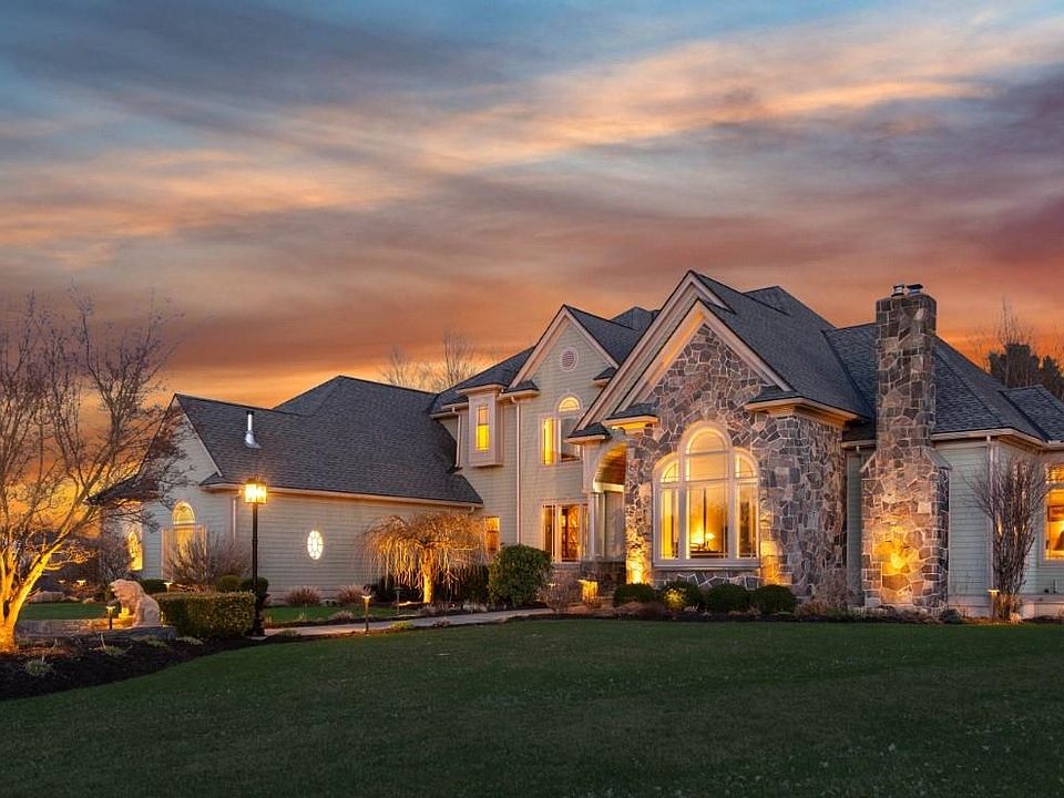 Stunning home with 5Beds/6.5Baths and a 4-car garage on 7.7 acres with manicured grounds.