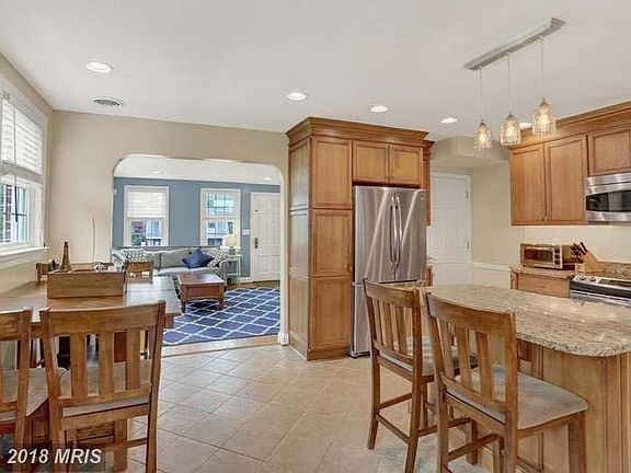 Fantastic 3 bed, 2 bath. HW flooring in all beds and LR. Gourmet kitchen with updated deluxe wood cabinets, granite island, granite counter tops, tile floor. Finished carpeted basement with surround sound, granite bar top equipped with deep sink and keg refrigerator. LL bath with dual headed shower and bench seat. Beautiful patio with covered porch and cedar privacy fence. Walk to Towson University, restaurants, shops and bars. Playground 1 block away. Corner lot with plenty of street parking. Renter pays electric. Oil heat included. Renters agree to regularly mow the lawn and shovel snow as needed.
