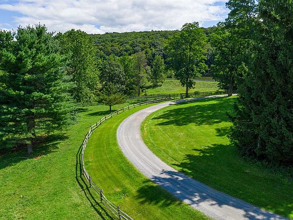 One of the most iconic estates of Millbrook with a colorful provenance dating from 1758, Lithgow is incomparable. With 204 acres of woodlands, rolling pastures and one of the most dramatic far-reaching countryside views in the county, it's centered by a period Grand Manor house. A picture-perfect setting for entertaining, the Manor offers well-proportioned rooms with 12' ceilings, oversize fireplaces and detailed architectural appointments. A broad loggia, for any size gathering, overlooks a sweeping lawn complemented by a series of English-style gardens. Thoughtfully designed and executed by the owner the published gardens include perennial and evergreen gardens, an allee of linden trees, hidden swimming pool with rock garden, raised bed garden with potting shed, a dome folly tucked in the woods and a floating pagoda on a serene lake. At the top of the property the Parthenon-style folly is ideal for picnics or quiet moments taking in the breathtaking views. A period barn and early carriage house complete the picture.