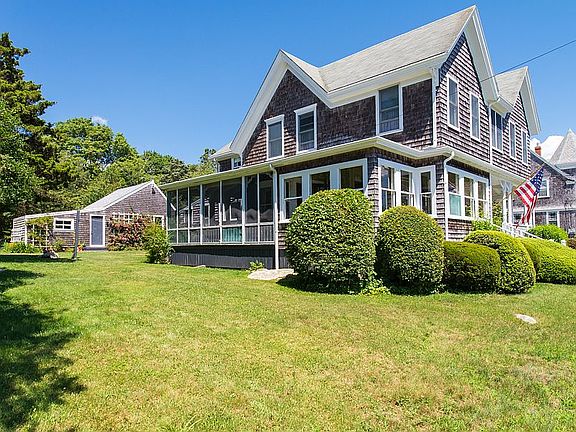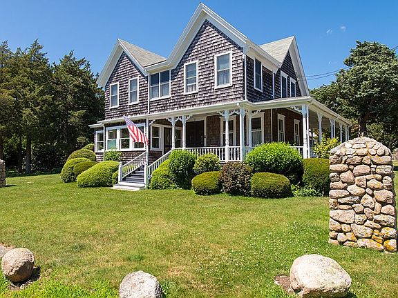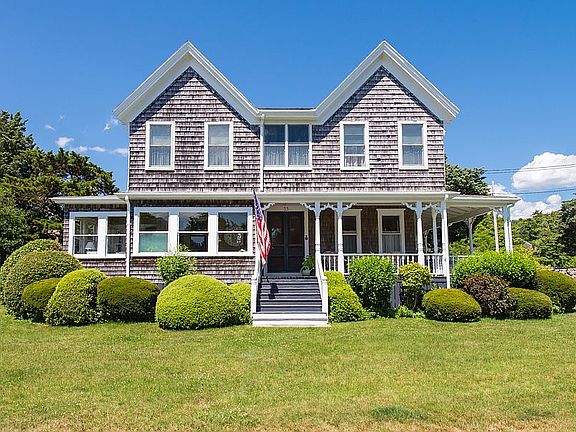 Premier location just a short walk to the private sandy association beach and minutes from town. This gracious five-bedroom Queen Anne style Victorian has been lovingly maintained reflecting custom craftsmanship, superb design and is admired by the community. Special features include the fine grain fir wood interior, original soapstone kitchen sink, fluted columns on the wraparound porch with heated sunroom and multiple outdoor living spaces. The master bedroom suite with dressing room offers views of West Falmouth Harbor. Organically preserved specimen trees, plants and antique stone walls grace the approximate .50 acre property along with a detached two car garage and garden shed. This warm and inviting home has distinctive character rarely found today.