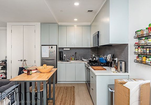 Large 1 bedroom apartment, full large separate living room with large corner windows on both sides getting dope views and massive sunlight! - Brand new luxury elevator building with gym, bike room, car parking, laundry and rooftop! located on Little Nassau St between Park Ave and Flushing Ave, short walk to the G train at Classon Ave stop, near Pratt Institute, Fort Greene Park! Clinton Hill is an exemplary neighborhood that encompasses everything that Brooklyn has to offer, 33 Little Nassau St is in convenient proximity to dozens of international restaurants and shopping areas with a vibrant mix of local storefronts and nationally recognized destinations like the Barclay's Center. Some of the best doughnuts in NYC can be found at nearby Dough, and upscale restaurants like The Finch are nearby for Michelin Star Dining. Just across the street is the renowned Choice Market which offers residents' baked goods and prepared foods, while iconic cultural landmarks like the Pratt Institute, Fort Greene Park are all in the neighborhood. Access to the G, A and C subway lines makes a commute across town or to Manhattan easier than ever. Spacious bedroom with great closets and floor to ceiling windows allowing tons of natural light in, kitchen with stainless steal kitchen appliances includes a gas stove, microwave and dishwasher, modern bathroom with tub and shower, a true delight this apartment is with high ceilings, hardwood floors, and so much light! All brand new! Guarantors Accepted Pets allowed *upon approval Dishwasher Rooftop Central air and heat Showing by appointment no brokers fee