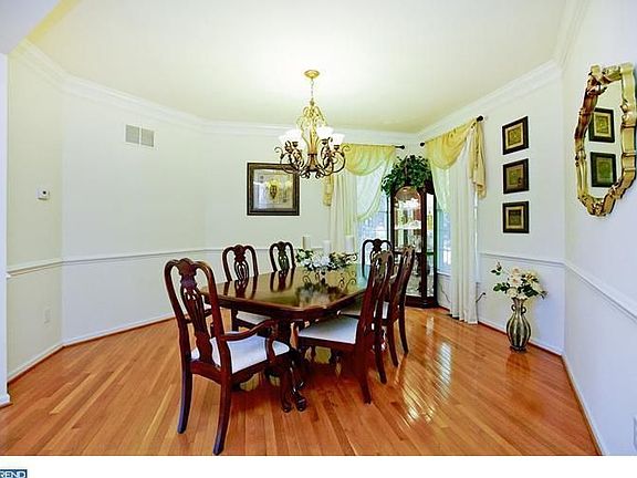 Elegant Expanded Mt Vernon Model home at the desirable Estates at Princeton Jct! The beautifully landscaped premium lot is on cul de sac w/ the back of the house bordering the tranquil woods. Meticulously maintained house has 4 BDs & 3.5 BAs w/ upgrades like oak hardwood floor, double-tray ceiling molding, alarm system, ceiling fans throughout the house, deck & spacious finished walk-out basement. Gracious 2-story foyer followed by oak staircase. Formal DR sat on an angle toward the front door & open to the foyer. Well-equipped kitchen has 42' cabinets, new GE Profile stove, granite counter tops, large island & pantry. Breakfast area has doors to the outside deck. Sun-lit FR has marble framed enchanting fireplace. Secluded office & laundry rm complete the 1st floor. Grand MBR has sitting area, walk-in closet, master bath, whirling tub & stall shower. Princess Suite has full bath & walk-in closet. 2 other BRs, 1 full bath, 1 walk-in closet & 1 closet. 5 min to train station.