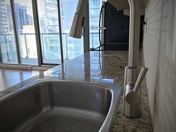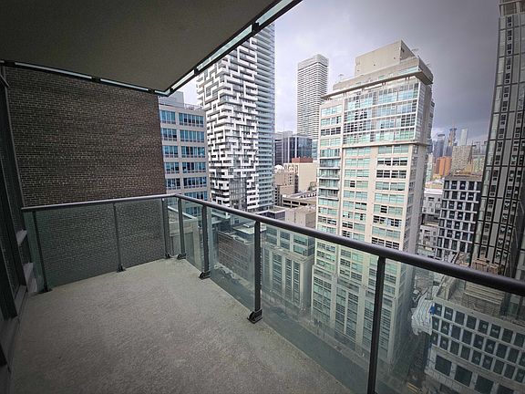 ADELAIDE & CHURCH 33 Lombard, "SPIRE" a City of Toronto Urban Design Award winning, one of the most sought after buildings in the heart of downtown. 1 Bedroom exquisite, bright, corner unit with 9 ft floor to ceiling windows on two sides and large 94 sq. ft balcony with parking spot and storage locker. UNIT DETAILS: Fully equipped, open concept kitchen, double sink, contemporary "wall cabinet" microwave and oven and "Chef's" range. All appliances (range/oven/micro/dishwasher,fridge and cabinetry) are upgraded. The upgraded Italian cabinetry provides a terrific amount of storage. This is a prime corner unit with 9 ft windows on 2 walls w/ super vistas of the city. Terrific bedroom with ample closet space for 2. The bathroom has upgraded tiles and the vanity has marble countertop. Flooring in the rest of the unit is upgraded 'wide plank' hardwood. There is a thermostat for In-Suite controlled heating and air conditioning and the In-suite washer and dryer are included. BUILDING AMENITIES: Terrific bright modern well equipped fitness room. Great rooftop patio terrace and exquisitely designed contemporary party room & conference room, all with massive 10' doors leading outdoors. 24 hour security/concierge. NEIGHBOURHOOD: East/west TTC streetcar stop within a half block walk, subway in 2 blocks . St. Lawrence Market 2 blocks away, 2 blocks to the Eaton Centre . Lots of coffee, food & evening fun w/ fantastic cafes, restaurants, lounges, bars & theatres right at the door. 15 min to all 5 of Toronto's major Healthcare Centres, 3 min to the Financial District . 5 min to the Harbourfront w/ bicycle paths, short walking distance to Metro Convention Center, CN Tower, and Rogers Centre. Many fitness & yoga facilities in immediate neighborhood & rental car companies at your door. Extras: There are also 2 Guest suites which are available for rent for your out of town guests on a nightly basis. MIN 12 MONTH TERM PLEASE. References, proof of employment required. Available any time from March 1 No smoking