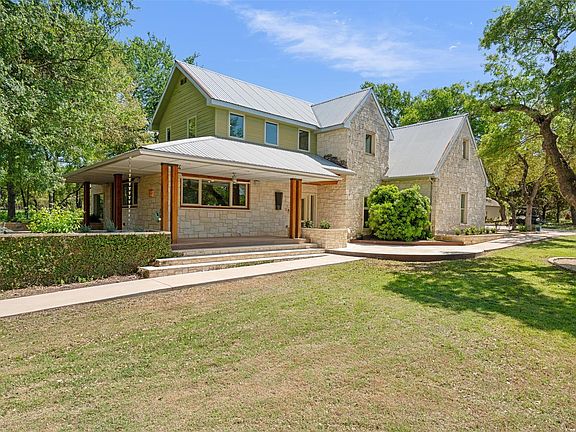 Welcome to your serene hill country retreat on 3.806 acres, perfectly nestled between Austin and Dripping Springs. Just far enough off the main road to feel like a private getaway but close enough to all the modern amenities you need. The wrap-around deck offers a perfect spot to relax and enjoy the stunning views of mature oak trees, with your own wet-weather creek, and surrounding wildlife including birds, deer, foxes, and even armadillos! There is a beautiful fenced-in pool just off the home, multiple tree swings and benches to enjoy throughout the property, and your very own treehouse too. Step inside to find tons of natural light with big windows throughout, providing protection from the elements while allowing you to enjoy the hill country setting all day long. New painting of the entire second floor was completed on 06/20/2025!! The open-concept kitchen is an entertainer's dream, fully equipped with Monogram professional gas cooktop, double ovens, refrigerator, microwave, and built-in refrigerated drawers with an ice machine in the island. An expansive dining area just off the kitchen provides ample room to host parties and events plus your very own wine fridge! A custom barn door in the living room hides your TV and electronics when not in use, there is beautiful bamboo flooring in the entire home plus a gorgeous stone fireplace that anchors the living room. The primary suite on the main floor overlooks the rear of the property with an updated ensuite bathroom including dual vanities, large walk-in shower, and a separate soaking tub perfect for luxurious bubble baths. And don't miss the two primary walk-in closets! There's no need to fight over closet space here. Upstairs you'll find three spacious guest rooms, one with an ensuite bath, and two others sharing a Jack & Jill bathroom. An additional bonus room can be used as a gym, office, media room, or whatever your heart desires! Don't miss out on this gorgeous property and schedule a showing today!