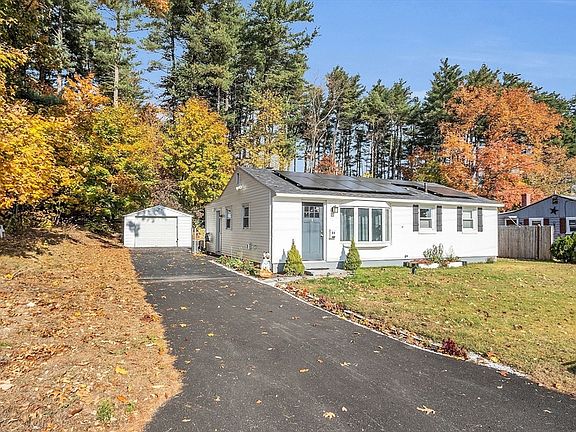 Whether you're looking to downsize, your first home or want one-level living, this home on the Fitchburg/Leominster line is for you. The front of the house is south facing to allow lots of natural light in. This home was fully renovated in 2020 (New Furnace, Plumbing, Electrical, Roof and Solar!). The open floor plan is perfect for entertaining, and the bonus 3 Season Sunroom adds extra living space for cozy nights in front of the gas fireplace. The kitchen boasts beautiful granite countertops, new appliances (2020), plenty of storage and two generous sized bedrooms. Flat yard abuts town-owned property, and it is great for outdoor activities. Detached 1 car garage with work area and storage. Seller is relocating out of state, it is your turn to make this beauty YOUR HOME! Showing starts at Open House
