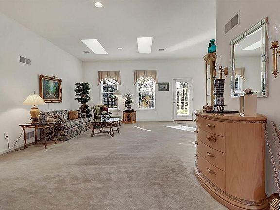 Perfect condition! This wonderful home features one floor living and attention to detail in spacious open floor plan! Flexible design! Large multi-purpose room off breakfast area can be family room, office or even another bedroom. Two light tubes for natural light, skylights, and lots of windows. Economical heating and cooling, attic storage above garage. Large paver patio with Sunsetter awning with remote and extension. Neighborhood walking path behind home. Super location, and a pleasure to inspect!