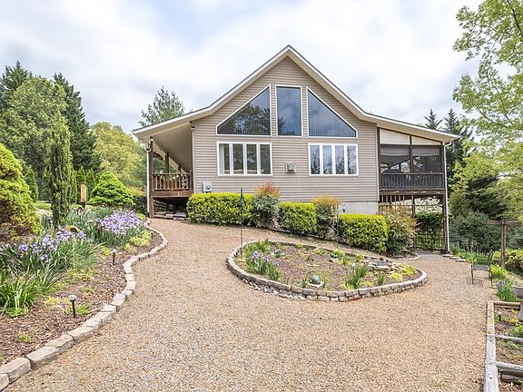 This charming chalet is located in Tarheel and only 5 minutes to downtown Murphy! Over an acre of mature grounds is a gardener's paradise with thoughtfully maintained flower beds, lush trees, shrubs, and rock-lined pathways weaving through the landscape. As you approach, the chalet's large front and back porches beckon you to enjoy the surroundings. The lower back patio features a luxurious hot tub, perfect for soaking away the stresses of the day. Stepping inside, you're greeted by a bright and airy Great Room with large windows and a gas log fireplace. The kitchen, seamlessly integrates into the Great Room, offering a functional space for meal prep while staying connected with guests. Adjacent to the Great Room, a large screened porch provides an idyllic spot for dining or simply basking in fresh mountain air. Rounding out the main level is the master bedroom, with double closets and an en suite bathroom and adjacent laundry area and a half bath. Upstairs is a spacious loft Master Suite, complete with a walk-in closet and bathroom, offering comfort and privacy for occupants. In the lower level is a large basement. With a half bath and walk-out access, it serves as a versatile space for recreation, storage, or even additional living quarters. Conveniently, a two-car garage provides shelter for vehicles and outdoor gear. With its blend of indoor comfort and outdoor splendor, this chalet presents an opportunity to embrace the coveted mountain lifestyle in style and serenity.