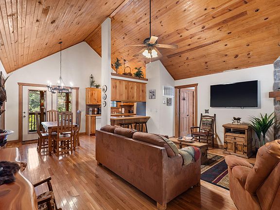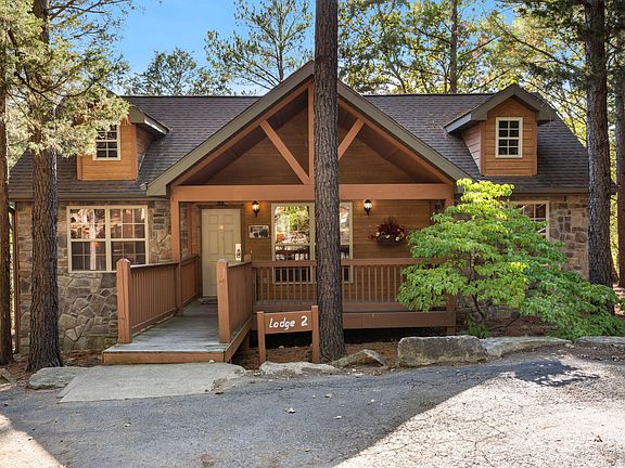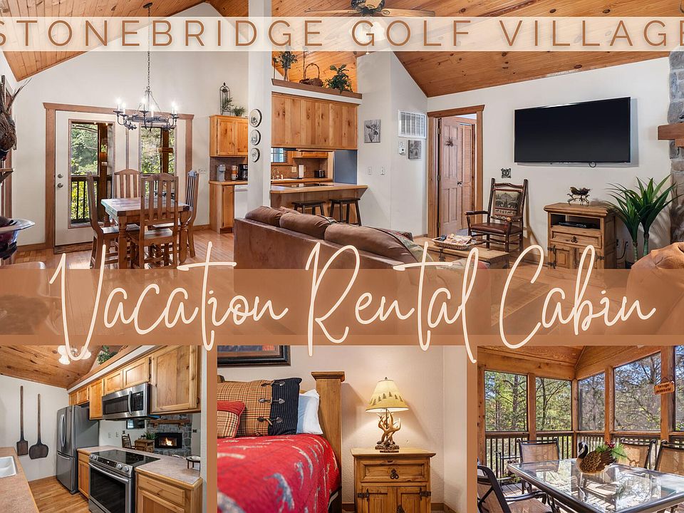 Immerse yourself in the rustic charm of this picturesque vacation rental cabin, a perfect retreat where relaxation meets recreation. This cozy, fully-furnished abode features two inviting bedrooms and two well-appointed bathrooms, promising comfort after adventurous days. The vaulted ceilings add an air of elegance and openness that complements the cabin's earthy, wood-centric decor.Step inside to a warm space where the outside world melts away. The screened-in back patio is your private nook for morning coffees surrounded by whispers of the wilderness. If the lure of nature isn't enough to keep you outdoors, the community amenities surely will. With outdoor pools, a clubhouse, and courts for tennis and pickle ball, leisure options abound. Not to mention outdoor pavilions for picnics, playgrounds for the little adventurers, a volleyball court, and a basketball area. For those who enjoy calm reflective times or vigorous walks, the walking trails are perfect.Golf enthusiasts will appreciate the top-notch golf course located within this gated community, providing the ideal backdrop for perfecting your swing. A brief venture offsite brings you to the pristine waters of Table Rock Lake at Indian Point, a haven for those who love water activities.And when you're ready for a shift of pace, the vibrant city of Branson is just minutes away. Dive into its bustling scene of entertainment, savor the local dining, and indulge in an array of shopping options. This cabin is not just a getaway; it's a launchpad to experiences that make every day memorable. Let the adventures begin!
