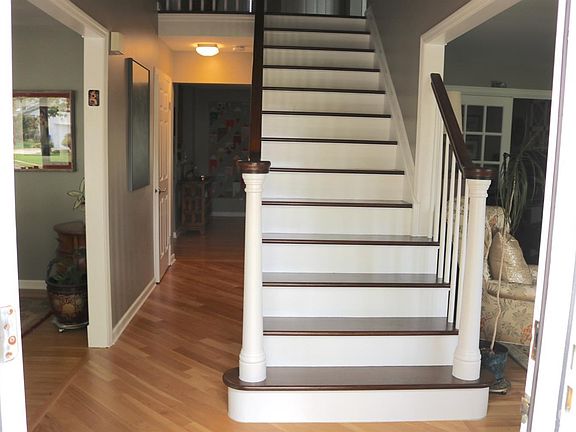 Updated 4BR, 2 1/2 Bath Center Hall Colonial w/CAC, 2 Car garage, Modern kitchen w/Granite counters/breakfast Bar, Built-ins, SS Bosch appliances-Double wall oven, Gas cooktop, Range hood, Microwave, Pot filler, Double sink w/instant hot water, MBR w/Vaulted ceiling & 2 walk-ins, 1st Flr Laundry, Sliders to deck from kitchen and Family Rm, Full basement w/roughed in plumbing for bath, New windows, Central Vac, Sprinklers, Fenced yard.