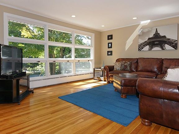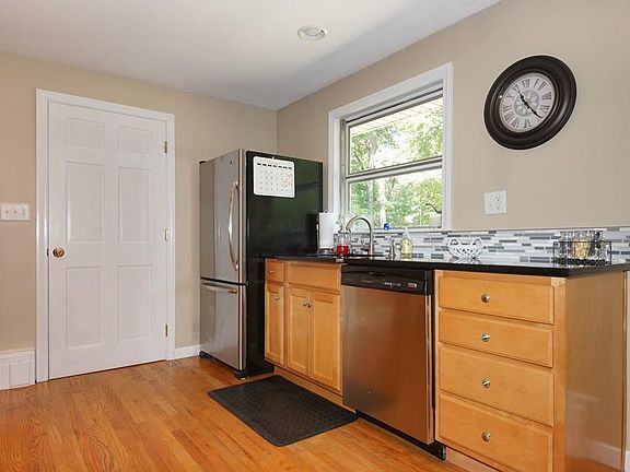 Spacious multi level home, beautifully updated kitchen with warm maple cabinets, custom quartz counter tops & coordinating back splash. Gleaming hardwood floors throughout, comfy living room with large picture window & fireplace, 3 bedrooms on third level offering hardwood flooring & full bath. Large mud area to store all your outdoor outerwear with garage & exterior access. Lower level has large finished family room/playroom with fireplace & many windows for a sun filled room, additional room being used as sewing room can be used for multiple purposes. Lower level w/ half bath & exterior access to private wooded back yard & three season screen porch w/stone flooring & patio.Unfinished basement for extra storage, lovely large private yard w/ natural surroundings& stonewalls,Some updates include,new recessed lighting & fixtures,new 200 AMP electrical service ,interior paint,new insulation in attic,water filtration in kitchen sink,architectural shingles,this is a must see not a drive by.