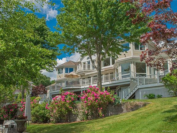 Lake Pocotopaug lakefront Estate for sale. The Property was designed by renowned architect Richard Kennedy and custom built by Chris Scutnik of Creative Design Builders. Three stories with the two main living floors comprising of over 4,500 square feet, and includes a 2,500 square foot fully finished walk out basement. Total of five bedrooms, four and a half bathrooms. Two custom kitchens, Master bedroom with his and hers walk-in closets, Jacuzzi tub, and his and hers sinks and showers. Five car garage with ceiling heights of twenty feet allowing the ability to rack cars for a total of nine vehicles. Full gym, sauna, sun-room, bonus rooms, outdoor shower, hot tub and more. Located on Meeks Point Road with spectacular westerly views all four seasons. The property is .69 acres and one hundred and fifty feet of direct lakefront with a two slip boat house. No expense was spared building this custom Estate Home. Every finish is of the highest standard and quality. Conveniently located within a twenty minute commute to Hartford and forty minutes from Bradley International Airport. For those looking for a summer and weekend Lake Retreat, the property is one hundred and twenty miles from both New York City and Boston. Brand new roof and Master Bathroom.