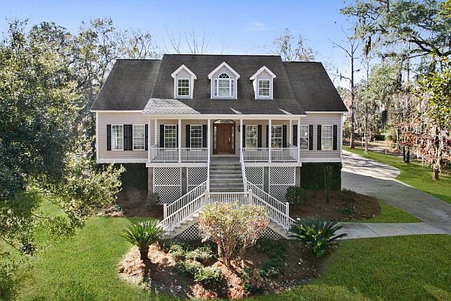 Stately Low Country Waterfront Home with over 1.29 panoramic acres on the marsh. This beautifully updated home features formal sitting room / office, formal dining room, and open kitchen and great room. Master suite with fireplace and large master bath with two walk-in closets. Two Guest suites feature full guest bath. Wonderful bonus room on second floor with private full bath, room for a pool table and more.Back deck overlooks tranquil marsh and huge backyard. Daylight basement / garage has room for 4 cars and a boat!