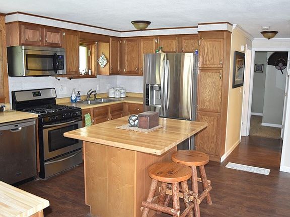 Looking for serenity & getaway from the hustle & bustle of your work day?3-4 BR raised ranch style home.Enter thru the front door into living rm w/open flr plan to kit (w/stainless steel appl.) & sun rm that overlooks your priceless view.Watch & listen to the trickle of the river or various wildlife as you unwind.Great space on main lvl for entertaining.2 lrg BRs & remodeled full bath. BR 1 is the bigger of the two w/wall of built-ins.Finished lower level w/several walkouts.Carport entrance to sitting rm,BR 3 & an extra rm for guest/office,pantry/util rm,2nd full bath,cooled/heated wrkshp.