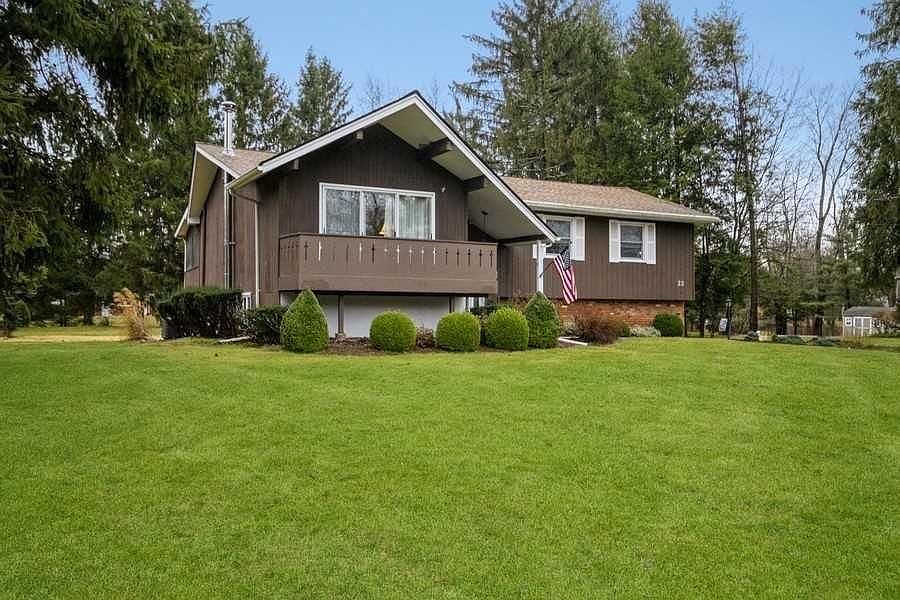 Well maintained raised ranch with vaulted ceilings in a quiet and centrally located East Fiskill neighborhood close to schools and restaurants. The home sits on private lot with mature trees and landscaping with nice curb appeal. With plenty of room to play both indoor and out, the floor plan is excellent for entertaining with a covered and screened in back porch, a sliding door to the backyard from the lower level family room, and an additional rear door from the mudroom and half bath. Inside you'll find hardwood flooring, an oversized front door entrance a beautiful wood burning brick fireplace as the centerpiece. The oversized living room has vaulted ceilings, decorative beams and sliding doors to a front porch with tons of natural light. The the main level is complete with three nice sized bedrooms, a full bathroom in the hallway, and an updated half bathroom off the master bedroom. The lower level has a 2 car garage, family room, large laundry and mudroom with a powder room, and an additional office/playroom. Updated boiler, c The upstairs has three bedrooms and a full bath. The home is complete with air conditioning, recently replaced boiler, 3 zone baseboard heating, updated 6-panel interior doors, and crown moulding.,AboveGrade:1906,Basement:Interior Access,Below Grnd Sq Feet:540,EQUIPMENT:Carbon Monoxide Detector,Smoke Detectors,ExteriorFeatures:Landscaped,FLOORING:Ceramic Tile,Wood,FOUNDATION:Block,InteriorFeatures:Electric Dryer Connection,Electric Stove Connection,Washer Connection,OTHERROOMS:Laundry/Util. Room,ROOF:Asphalt Shingles