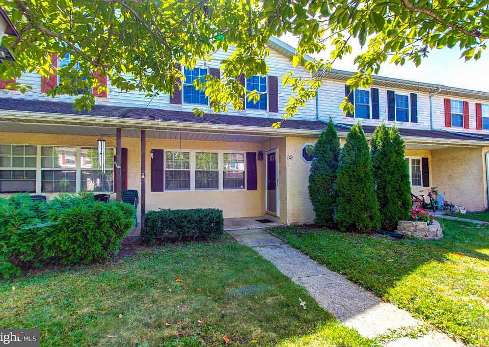 This 3 Bedroom, 2.5 Bath Townhouse is a must see. Updates include New Roof in 2015, New HVAC System in 2012, and Simonton energy efficient replacement windows throughout. The entrance features a covered porch that opens into a foyer with coat closet and very spacious living room with carpet. A short hallway leads to the half bath and a closet under the stairs is the perfect place for well-organized storage. Beautiful laminate flooring begins in the hall and continues throughout the remainder of the first floor. Formal dining room is open to the updated kitchen that features KCMA Certified cabinetry with soft close drawers, stainless steel Kenmore smooth-top stove and dishwasher, stainless sink with disposal and beautiful granite counter-tops! A laundry room off the kitchen completes this level. Upstairs the master bedroom has a large closet with mirror door and private bath with skylight and stall shower, newer vanity, and linen closet. Two other nicely sized bedrooms share the full hall bath with skylight, and newer vanity. Pull down stairs access the floored attic for added storage. The back door leads to a concrete patio, storage shed, and completely fenced backyard. One assigned parking spot and plenty of guest parking. Quick access to Turnpike, Route 309/313, and short distance to shopping, public schools and parks. Association includes trash, club house, community pool, common area, snow and front yard lawn maintenance at an unheard-of monthly fee 65.00/month! The property qualifies for the USDA Rural Housing Program... 100% financing!