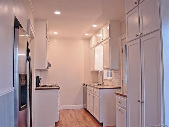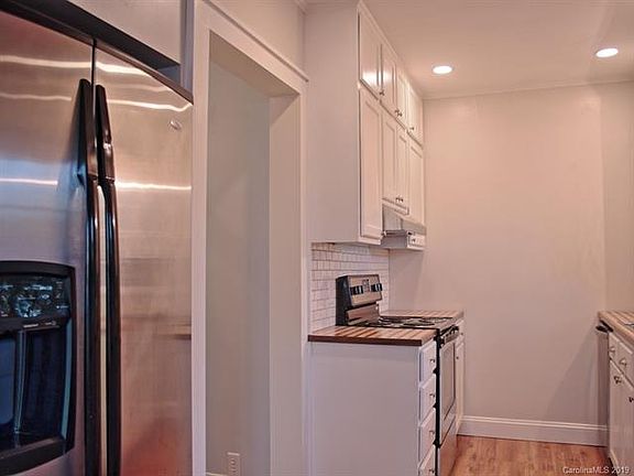 Adorable house walking distance to downtown Brevard. 1940's house with some original architectural details, but the modern conveniences you will want. Many recent updates, including new paint, light fixtures, master bath vanity. Nice cabinets (including pantry cabinet), and custom countertops in the light filled kitchen/dining area. Living room has beautiful built in shelving , fireplace, and pressed-tin-look ceiling, with lots of light coming in through front door and 4 windows. Some newer windows. No carpet! Most of the original hardwoods have been refinished. Nice sized deck on the front of the house with retractable awning for shade. Finished area in basement has loads of potential- craft/hobby, den, media, play - and there is a convenient half bath in this area. Basement garage for a single car and additional space for storage/workshop. Small covered back porch. Backyard is fully fenced and level- perfect for gardening, or pets, or playing/entertaining. Home warranty.