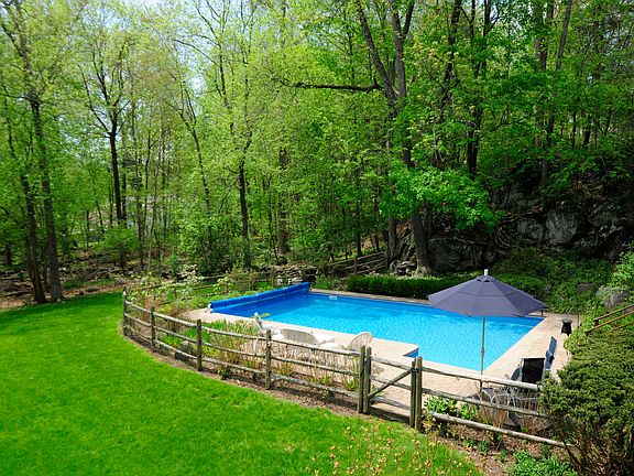 Lovely Colonial on a beautiful mid-country cul-de-sac close to schools, town and train, and just steps to the Montgomery Pinetum with gardens and great walking trails. The living- and dining rooms open to a light-filled solarium with views of a beautiful yard and swimming pool. First floor includes: LR, DR, Solarium, Kit, FR, library/office, bedroom (currently used as 2nd office) and full bath. Second floor includes: master bedroom w/ en suite bathroom & walk-in closet, three family bedrooms and hall bath. Finished lower level w/ wine storage room, family/play room, laundry plus ample storage space. Two rear decks overlook the beautiful backyard. Oversized lot; 1.29 acres in 1-acre zone.
