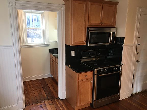 NO FEE! Very receptive landlord. If interested, contact us via email or Call. Please leave a message as to your employment and who will be living in the apt with you. Thanks. Have a great day! Nice, clean, Renovated 2 bedroom apartment on the first floor of a quiet three family. stainless steel Bosch appliances, hardwood floors throughout, tile in bathroom, granite counters, corian shower surround, front and back composite decks, back yard. On street parking. Laundry in basement, Utilities not included: gas heat, hot water, cooking. Non smokers please. First, last and one month's security required to move in. Tenant responsible for utilities. First month, One month security deposit and last month rent required at move in.