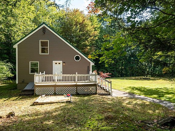 Looking for a home away from it all, but close to shopping and commuter routes? Located almost at the end of a privately maintained road you will find this gem of a 2+ bedroom home that is ready for its next owner to call their own! Enjoy the large, level yard with plenty of sunshine for a garden and complete with a large shed for storage, a chicken coop, and a fire pit as well. Enjoy a beverage any time of day on your large front deck or on the back deck. When it is time to come in out of the weather, enter into the rustic open concept first floor! Inside feels like you have entered a cozy log home with many wood features. Cook in your kitchen as your guests sit at the bar and chat or sit by the woodstove in the living room. If you are looking for some private space, the first floor has a separate room that could be an office or a first floor bedroom. Next to the kitchen you will find a full bathroom with high ceilings making it feel much more spacious than it is! Upstairs you will find 2 large rooms with plenty of storage and natural light. The basement has high ceilings and space to do laundry and a workshop. It is great to store your stuff or to finish for future extra space to hang out! Showings are delayed until Friday 9/30 by appointment with a public open house on Saturday 10:30a-12p.