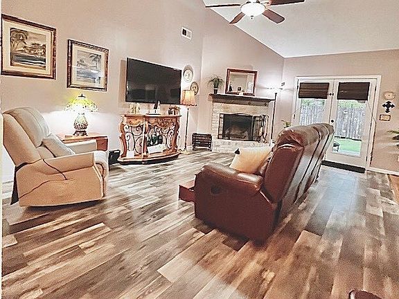 USDA Qualified! This Beautiful Ranch Home is Move In Ready with 3 bedrooms and 2 Full Baths conveniently located to Dining and Local Shopping. The Home Features a HUGE Fenced Yard with a Fantastic Oversized Covered Patio for Family and Friends to enjoy while visiting with total Privacy. This Adorable home features High End Granite Countertops in the Kitchen and Both Bathrooms, Tile Bathroom Flooring and accents. Main Living area Premiers Brick Gas starter Fireplace, Custom Wood Roman Blinds on French Patio Doors, Kitchen and in All Bedrooms. Large Open Kitchen adorns Stainless Steel Appliances, Washer/Dryer, Upgraded Chefs Hood and 5 Burner Gas Stove, New Disposal, Oiled Bronze Upgraded Faucets, Fixtures and Laundry Room. This Complete Step-less home has Easy Entry from the Garage, Front or Side Doors and features LVP and Wood Flooring Throughout, a Newer Roof and a Home Warranty. The Owners Suite is Oversized with a Nice Walk In Closet, Large Bathroom Space with Granite Counters, Vanity Seating, Soaking Tub and Separate Shower with Updated Fixtures, Glass Doors and Lighting. This home has designer lighting to include Stained Glass Kitchen Chandelier that Compliments the space and Remote Updated Ceiling fans.. The Open Concept Living and Dining Space is Perfect for entertaining and the Vaulted Ceilings are Bonus. Secondary bedrooms are both spacious for home office or additional bedrooms. This Home Qualifies for a USDA LOAN with 100% Financing and Zero Down. Again, Great Location minutes to dining and local shopping.