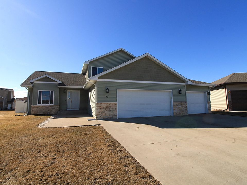 Welcome to this exceptional home! Immerse yourself in its undeniable charm and meticulous upkeep. With immaculate curb appeal and a spacious yard bordered by a privacy fence, this property offers the perfect outdoor retreat.  Inside, discover a welcoming living area with large windows and an elegant fireplace, currently being used as a formal dining area.  Adjacent to the beautiful kitchen boasting stone countertops and stainless steel appliances, you will find the large open floor plan, that seamlessly connects to a dining area and a sunken entertainment/living room complete with wired functionality for projector/media ideal for entertainment.  Convenience is key with a three-stall garage, laundry room, and full bathroom on the main floor. Upstairs, spacious bedrooms and a luxurious master suite await, offering ample natural light and direct access to a walk-in closet. Another full size guest bathroom with convenient access.   Situated in NE Minot, this home provides easy access to parks, trails, and major highways. Don't miss this opportunity – contact your realtor today!