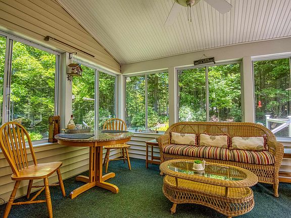 This lovely 3 bedroom, 2 bath custom style ranch home is nestled on a quiet lane in the desirable neighborhood of Evergreens on the Saco. Built in 2004, this home is designed for easy one floor living. The home offers many features including vaulted ceilings in the main living area, central air, beautiful corner gas fireplace, ceiling fans, Bosch appliances, 3-season porch, large deck perennial gardens, a water feature and it is handicap accessible. The house also offers an attached 2-car garage, mud room/laundry room, a large sub-level family room/game room, complete with pool table and gas log stove, and plenty of storage space. This home has access to a private sandy beach on the Saco River as well as access to the association owned club house. Evergreens on the Saco is located just 2 minutes from Conway Village and less than 10 minutes from North Conway with its many fine restaurants, shopping, golf and skiing.