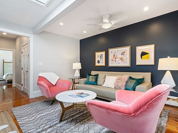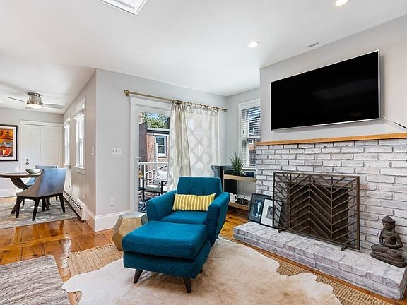 This stylish and open 2BR/1.5BA offers an excellent layout on the top floor with private deck. Well located on a desirable street, features include original wide pine floors, nice ceiling height, a spacious living room with fireplace and direct access to outdoor space. The kitchen offers stone counters and stainless appliances along with plenty of room for dining. A tastefully renovated powder room is tucked off the kitchen. The main bedroom offers a skylight and plenty of closet space and the second bedroom is also perfect for a work from home set up. The main bath is accessible from both bedrooms. There is great storage in the unit along with a large private storage area in the basement where the unit washer/dryer is located. This is an excellent opportunity to own an appealing condo in Charlestown. Local shops, restaurants and amenities are nearby. Easy access to MBTA routes.