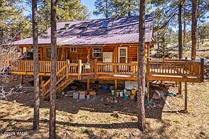 Beautiful little four season cabin in the trees. 2 Bedrooms downstairs and 1 Bedroom/Loft upstairs. Well insulated for winter use and very cool in the summer with low utility bills. Choice of propane, electric or woodstove for heating; all ready to use. 500 gallon propane tank. Elk, Deer and Turkeys in the yard all year and property line access to the National Forest. Fire hydrant in front of the house and fire department a quarter mile away. Easy year round access on a private road easement through the forest. Spacious loft with large sky lights and big covered porches front and rear.