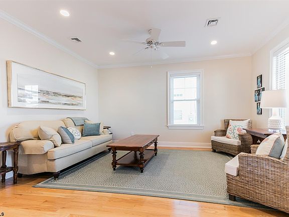 Built in 2014, this shore getaway is located on one of the most popular "ABC" blocks of Margate, just 2.5 blocks to the beach. The home is situated on the "sunny side" of the street and surrounded on both side and across the street by new homes too. Besides the large living room and separate dining room there is also a 1st floor family room and a full bath which can be used as a first floor bedroom. The home boasts hardwood floors throughout with a custom kitchen with granite center island, stainless steel appliances and an open floor plan conducive to entertaining. There is also a large laundry room with a full size washer & dryer with a tank-less hot water heater with access to the fenced back yard. The 2nd floor includes the master bedroom which includes a private spa bath, a walk in closet and a private balcony. There are two more large bedrooms and another full bathroom on this floor. The 3rd floor has two more bedrooms and another full bathroom. Exterior highlights include a covered front porch, a fenced backyard and parking for three or more cars.