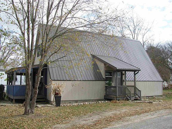 This remodeled A-Frame home feels much larger than it appears driving by. The 8 x 15 covered front porch is is a great place to sit and enjoy summer evenings and the breezes off Long Lake. Spacious 14 x 21 living area, eat-in kitchen with sliding doors to the back, 3 bedrooms and 2 full baths. Utility area with washer/dryer hook ups. Some recent updates include new metal roof, new electric furnace, baths, new floor coverings, light fixtures and ceiling fans, paint, decor and more. Access to private beach area. Buyers and buyers agent to verify sq. footage and room measurements.