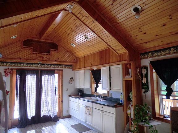 Nicely updated 2-3 bedroom home. The kitchen is amazing with wood tongue and groove ceiling, recessed lighting, lots of cabinets and counter space. There is a pass through with a snack bar between the kitchen and dining room. Large living room, 2 car garage (new roof 7/2015), deck, deep yard and cement drive.