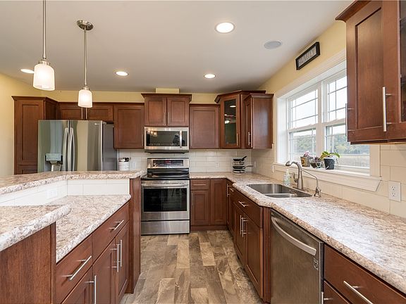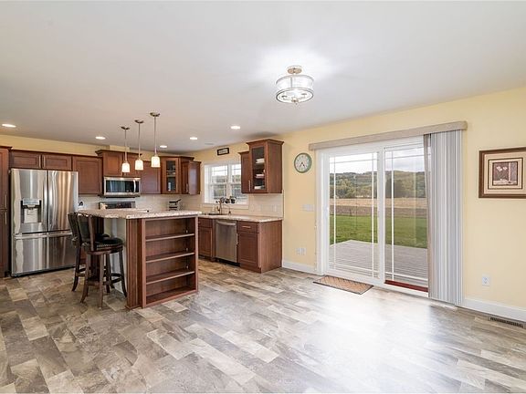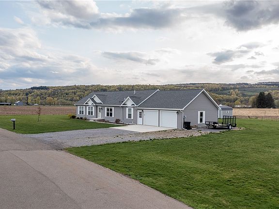 OPEN HOUSE SUNDAY APRIL 30TH 11:00-1:00! A newly constructed home nestled in one of the Village of Arkport's most desirable neighborhoods! This ranch home boasts 1736 SF of living space complete with 3 bedrooms, 2 full baths, a full basement and a 29'x29' garage! You'll love the open floor plan that's perfect for entertaining family & friends in the kitchen/living area! Off of the kitchen you'll find a bonus room that could work as an office & further down the hall is the master bedroom that features a huge walk-in closet and a spacious bathroom with a walk-in shower. From the garage entry there is a laundry/mud room along with 2 bedrooms and a full bath. Downstairs there are two rooms that are finished, perfect for extra living space and a large utility room with lots of shelving for storage. A maintenance free deck and storage shed have been added to this spacious lot of nearly an acre of land. With the LG appliances, Rheem furnace with the Wifi Thermostat, central air, and water softener there is nothing left to do but move in to this meticulously built home! Relax knowing that property is in like new condition on convenient one floor living! Delayed negotiations Tues May 2 @5pm