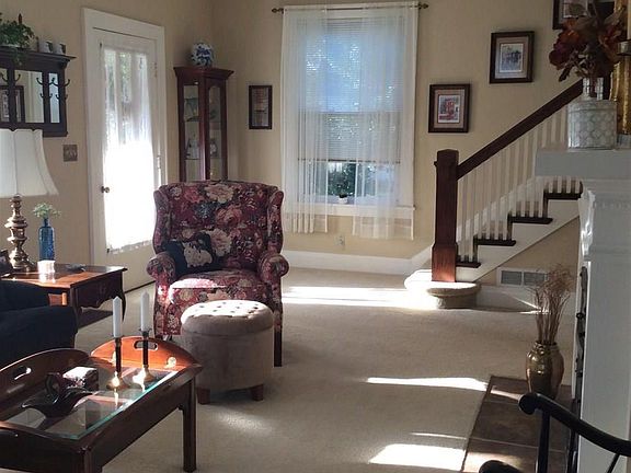 oak flooring under the carpet (except for back family room), utility room is on enclosed 8' x 11' back porch, front foyer with open staircase, 2 fireplaces, nicely landscaped corner lot, very well maintained home, all appliances, window treatments, & TVs present to convey, floored attic, 1 car detached garage with ample storage and attached carport, any furniture remaining could be purchased as well, open front porch, back deck.