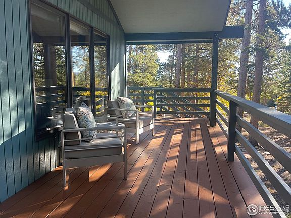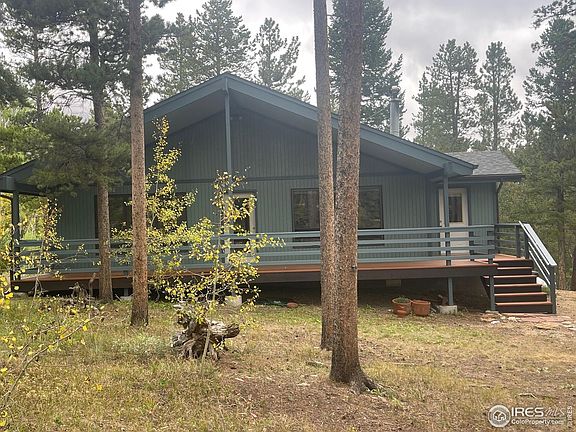 Live the dream in this well built, wonderful, updated 2 bedroom home nestled in almost 3 acres of pine and aspen forest, a few steps from miles of trails in Rocky Mountain National Park. Enjoy the deer, moose and other wildlife and birds year-round from the spacious covered deck in summer, and the abundance of large windows in the winter. An open plan, vaulted ceilings, beautiful oak floors and an efficient wood burning stove create warmth and intimacy in the great room. Features include new GE Profile gas range, tile floors in kitchen and bath, double pane casement windows, and great neighbors with no HOA. A well built Tuffshed is included for added storage. The Triple Creek Ranch community has a water system which means no need for a well. Less than a mile to Allenspark with cafes, shops, gas station and grocery store, the roads are maintained and plowed by the county year-round. This is a rare offering at an attractive price. House is move-in ready for immediate occupancy.