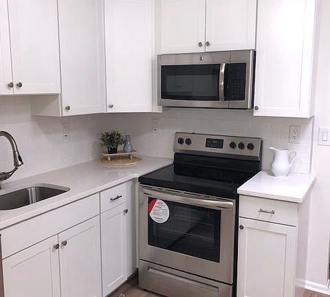 Great location in Leisuretown Community. Side street with very minimal traffic. Private back yard with covered patio. Renovated from top to bottom. 42 inch White Shaker cabinets, stainless appliances, quartz counter tops with subway tile. Bathroom features ceramic tile floor and all new fixtures. Fresh paint and new flooring done throughout. One car attached garage. Front porch is enclosed with additional storage space. One year home warranty included in sale. USDA Financing available.