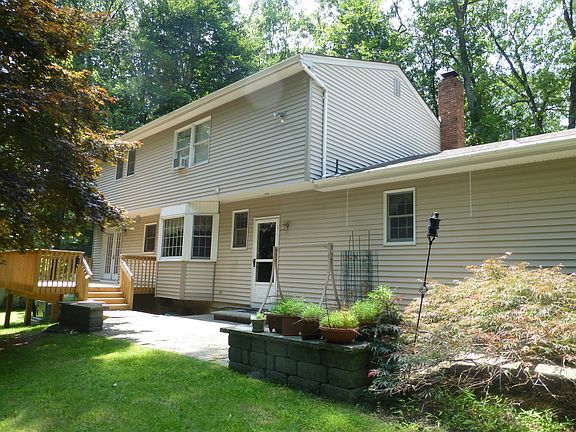 Welcome to this 4 bedroom, 2 1/2 bath colonial located on .78 acres in a highly sought after neighborhood with public utilities and natural gas. Special features include a new deck and patio. Some of the rooms have been freshly painted and the entire home has been professionally cleaned. The partially updated kitchen is open to the eating area which is situated next to the sunken family room with fireplace. There is hardwood floors in many of the rooms and a laundry room/mud room area with powder room on the first level. The full basement has a dividing wall which could be finished for recreational rooms or workshop area. The 4 bedrooms on the second level are very spacious!