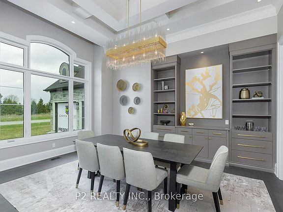 Coppin Forest Estates is a boutique collection of luxury estate homes on expansive 1 to 4 acre lots, offering a rare pre-construction opportunity in the heart of Uxbridges sought-after Goodwood community. Introducing the Inverness Model (Elevation A). An architectural masterpiece spanning approximately 4,050 sq. ft., on a 2.14 acre lot, thoughtfully crafted by Oxford Developments and set within the exclusive Coppin Forest Estates community in Goodwood, Uxbridge. This striking bungaloft blends timeless design with modern sophistication, a rare opportunity to own an estate home surrounded by nature, rolling hills, and luxury custom residences. The main level showcases soaring 10-ft ceilings, expansive living and dining spaces with open-to-above volume, and a seamless flow into the designer kitchen, complete with extended-height Canadian-made cabinetry, quartz countertops, a generous breakfast area, and a walk-in pantry with optional servery. An oversized mudroom with laundry adds practical elegance, connecting directly to the garage. This home offers 5 spacious bedrooms and 4 well-appointed bathrooms, including amain-floor primary retreat with walk-in closet and spa-inspired ensuite. Premium finishes include: 5 prefinished hardwood flooring, large-format 12"x24" porcelain tile (as per plan), 7 -1/4" baseboards, quartz surfaces in all bathrooms and laundry room, crown moulding, and 20 interior pot lights. Ceilings soar to 9 feet on the second level and throughout the basement. Steps to premiere golf clubs, scenic nature trails, and a short drive to boutique shopping andamenities. EXTRAS: Upgraded 8' interior doors on main level * Elegant veranda * Open-to-above ceilings in living room and dining room * Tarion Warranty included * Closings starting in 2027.