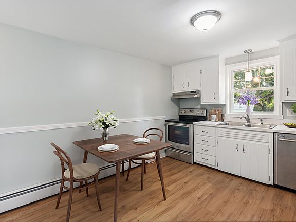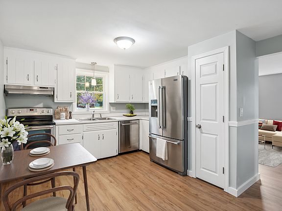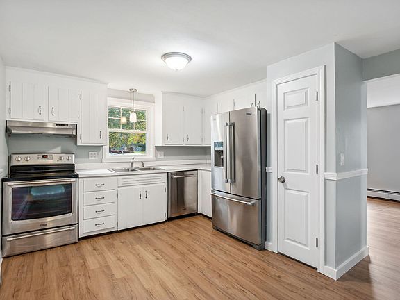 There is so much to love about 33 Northwood Road! This single-level ranch was recently updated with fresh flooring, paint, windows, lights and fixtures and is move-in-ready. The attractive kitchen, with stainless steel appliances, flows into the living room with a cozy wood-burning fireplace. You will also find a spacious primary bedroom, two additional rooms that can be bedrooms or workspace, and a full basement. There is a nice yard with undeveloped land behind it and plenty of room to play plus a deck that is perfect for outside meals or to sit and relax. Did you notice the fantastic garage? This oversized 32 x30 garage fits at least 3 vehicles, a workshop, and a third bay for lawn equipment and toys. The garage is insulated, featuring a second-floor loft equipped with electricity and set up for cable and phone. Lots of storage in the garage plus a full basement. This adorable neighborhood is perfect for evening strolls or exploring walkable downtown Yarmouth. There are so many excellent community locations in walking distance it's almost impossible to list them all! This ranch is almost across from Pratts Brook Park's with a disc golf course and is just about a mile from community ballfields, playgrounds, Main Street Village and Royal River Park's paved river walk with public access to launch your kayak or canoe. In Yarmouth's charming Main Street Village, you can enjoy shopping, dining, coffee shops and more. This quintessential Maine town is also known for its award-winning school system, abundance of parks, beautiful coastline, marinas, community garden, and quality of life. It's easy to visit the surrounding areas too with convenient highway access, only 10 minutes to the Freeport Outlets or 20 minutes to Portland.