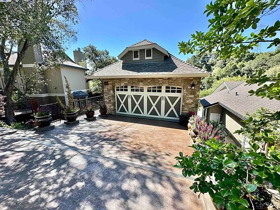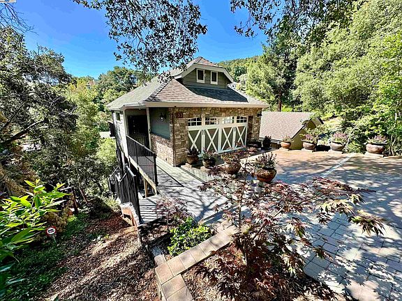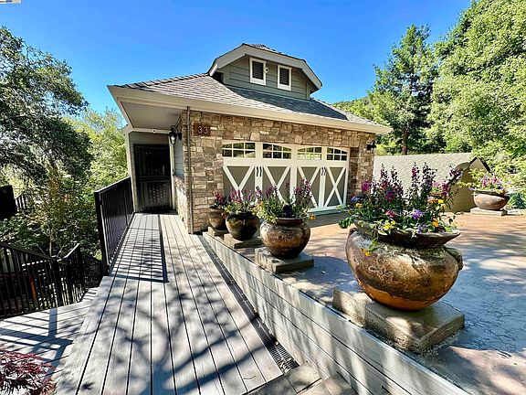 Views and more views! Unique and custom designed home, tucked away in a private wooded setting, offers breath-taking hillside views through your panoramic glass doors, giving it a treehouse-like feel. Four fantastic deck levels allow you take in the beauty of nature from sunrise to sunset. The Venetian plaster walls and exquisite stone accent walls will have you feeling like you are in a French chateau. The main living room area offers a bright space with vaulted ceilings and cozy electric fireplace. Meal prep is a dream in the kitchen with gorgeous marble countertops, custom cabinets, and stainless-steel appliances including Italian Bertazzonu gas range/oven. Your primary retreat awaits downstairs with your own private deck and more views. Stunning spa-like bathroom with walk-in shower and fabulous vanity. Two additional bedrooms and modern bathroom are just down the hall. The fully finished 1.5-car garage can be also used as a bonus room or office with crown molding, epoxy flooring and insulated door. Extra bonus features include recessed lighting, interior & exterior fire sprinklers, indoor laundry, elegant lighting, an optional mobility elevator, and Tesla solar lease. Top rated schools, dining and entertainment are moments away!