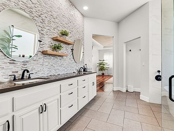 This stunning modern home features a fully landscaped outdoor space with a large relaxing backyard patio while expansive windows provide tremendous natural light. The kitchen offers a built-in island cook top, granite countertops, soft close cupboards and stainless steel appliances. The upstairs features a bonus room that has multiple utilization opportunities. The master bath features a luxurious laminar ceiling tub filler, a glass door shower with a rain shower head plus two additional shower heads for the ultimate spa like experience. The master bath also has features a heated floor.