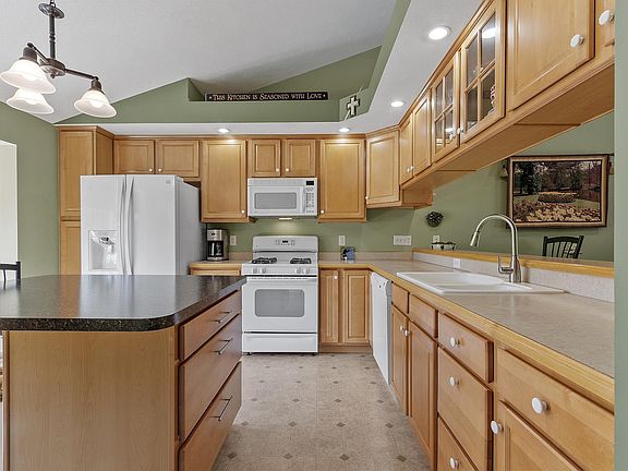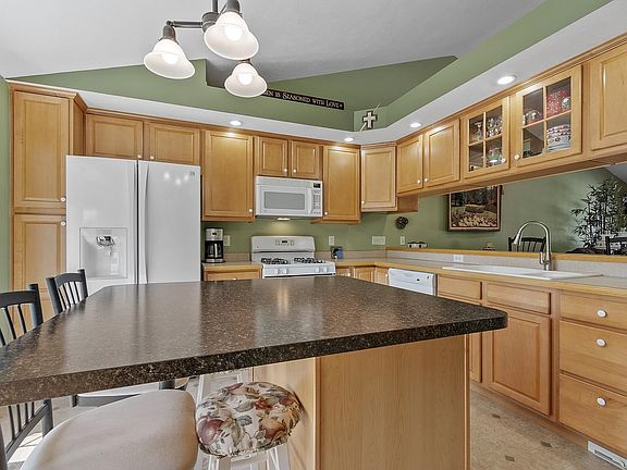 This 2 bedroom 55+ Condo is in excellent condition. Light & bright eat-in style kitchen (island will NOT stay) with a lot of storage, recessed lighting, gas stove, and side-by-side refrigerator complete the kitchen. The counter/bar in the living room faces the kitchen, which is ideal for entertaining year-round. The cathedral ceiling adds to the spacious feel and a cozy gas fireplace. The primary bedroom suite with step-in shower & double closets. Built-in bookcases are a charming detail that adds to the overall warmth of the space. The daylight & walkout lower level is finished with an office with a large window and a large space that could be used as a gym, family room, man/she cave, or even a guest suite with an attached half bath. There is additional storage there as well. Other features include 2 car attached garage & 4 parking spaces in the driveway, the back deck faces the woods, and a newer central AC and furnace. There is a portable generator included in the sale for emergencies. Association amenities include an association beach (with incredible sunsets, too) with a dock, a firepit pavilion, and tables. The association has regular social activities for those who choose to as well. Very convient location that is close to shopping and restaurants. perfect for 55+ living year round!