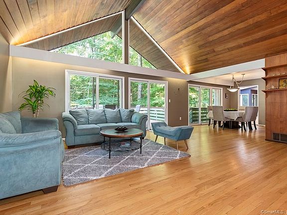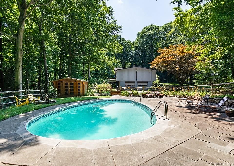 ** PRICED TO SELL!!!! GREAT LOCATION & UPGRADED THROUGHOUT THE HOUSE **. Beautiful Roger Small designed contemporary home, situated on a very quiet culdesac with private road and no through traffic. Just 5 minutes walking distance to Amity High School, Woodbridge Police, and Fire station. Upgraded throughout the house including kitchen, bathrooms, bedrooms, and basement. New paint job across the house. Large open floor plan with a bright updated kitchen with skylights. Large master suite with sitting room, fireplace, jacuzzi, and a deck overlooking Wepawaug River. Lower level has an additional finished 1700 sqft with a bedroom, full bath, living room, and entertainment areas with pool table. Plenty of space to work from home. Operational heated swimming pool with separate pool house. Central 4 zone heating and cooling. Beautiful yard surrounded by plenty of woods. Well maintained water and septic system with upgrades. Direct access to Alice Newton Park & Walking Trail.